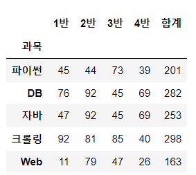 data['합계'] = data.loc[:,:'4반'].sum(axis=1)