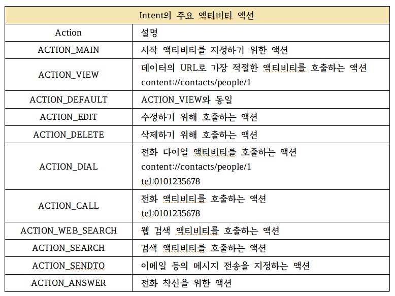 인텐트는 액션과 데이터로 이루어져있다.