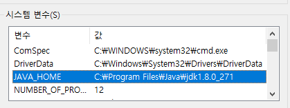 4) [환경 변수] - 시스템 변수 목록에 'JAVA_HOME' 의 존재 여부 확인