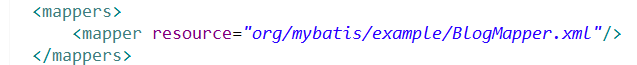 <mapper resource="org/mybatis/example/BlogMapper.xml"/>